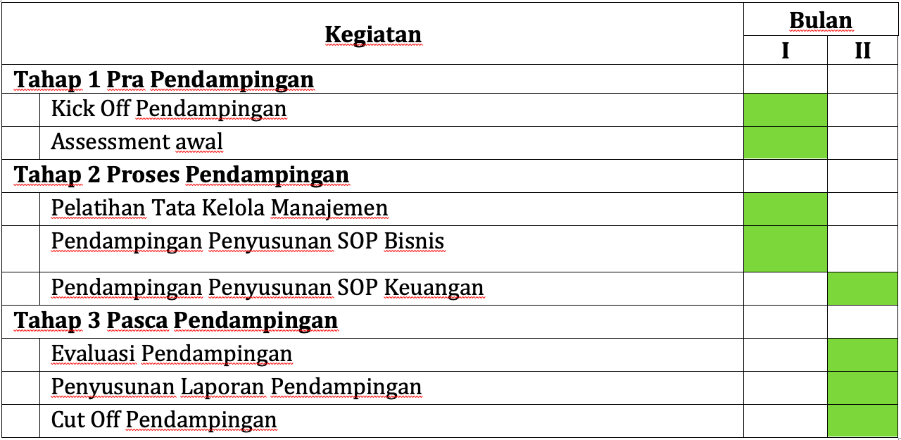 Pendampingan Tata Kelola Manajemen ini diberikan kepada perusahaan atau organisasi yang belum memiliki GCG yang baik atau ingin meng-upgrade. Pendampingan dilaksanakan secara offline (luring) dan online (daring).